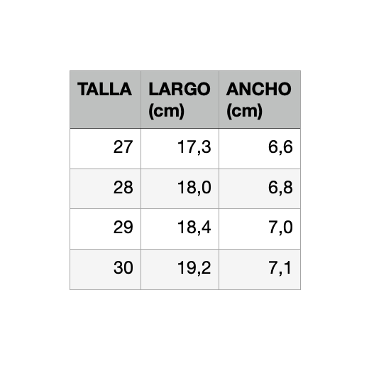 La plantilla extraíble es una herramienta muy útil para los padres. Permite comprobar si la talla sigue siendo la correcta de una forma muy visual y sencilla: simplemente saca la plantilla, pide al niño que ponga el pie encima, y asegúrate de que haya un espacio de entre 0,8 y 1,2 cm entre su dedo más largo y el final de la plantilla.