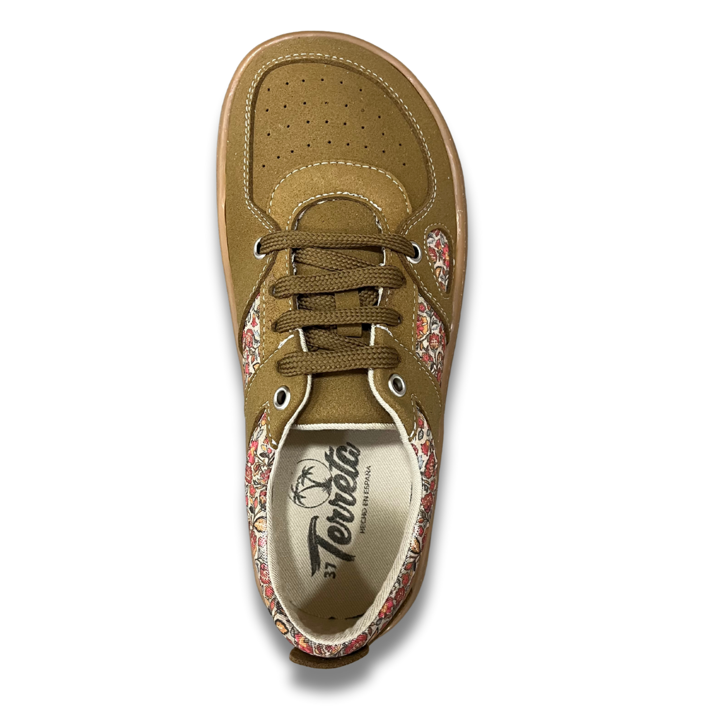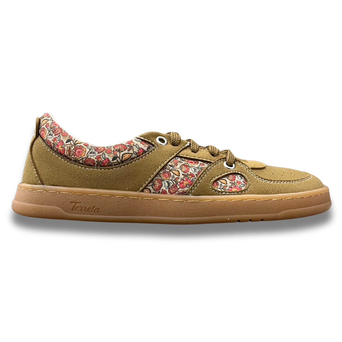 El modelo Augusta se renueva con una edición estampada que fusiona materiales de alta calidad, comodidad absoluta y un estilo visualmente llamativo. Esta versión en color marrón amostazado con flores está confeccionada en suede vegano, ofreciendo una opción cálida, versátil y con un toque natural para quienes buscan diseño sin renunciar al compromiso ético.
